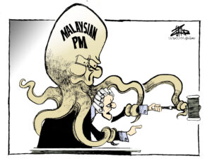 Kartun-kartun ketika itu memfokus kepada penguasaan kehakiman dan isteri PM (group caption